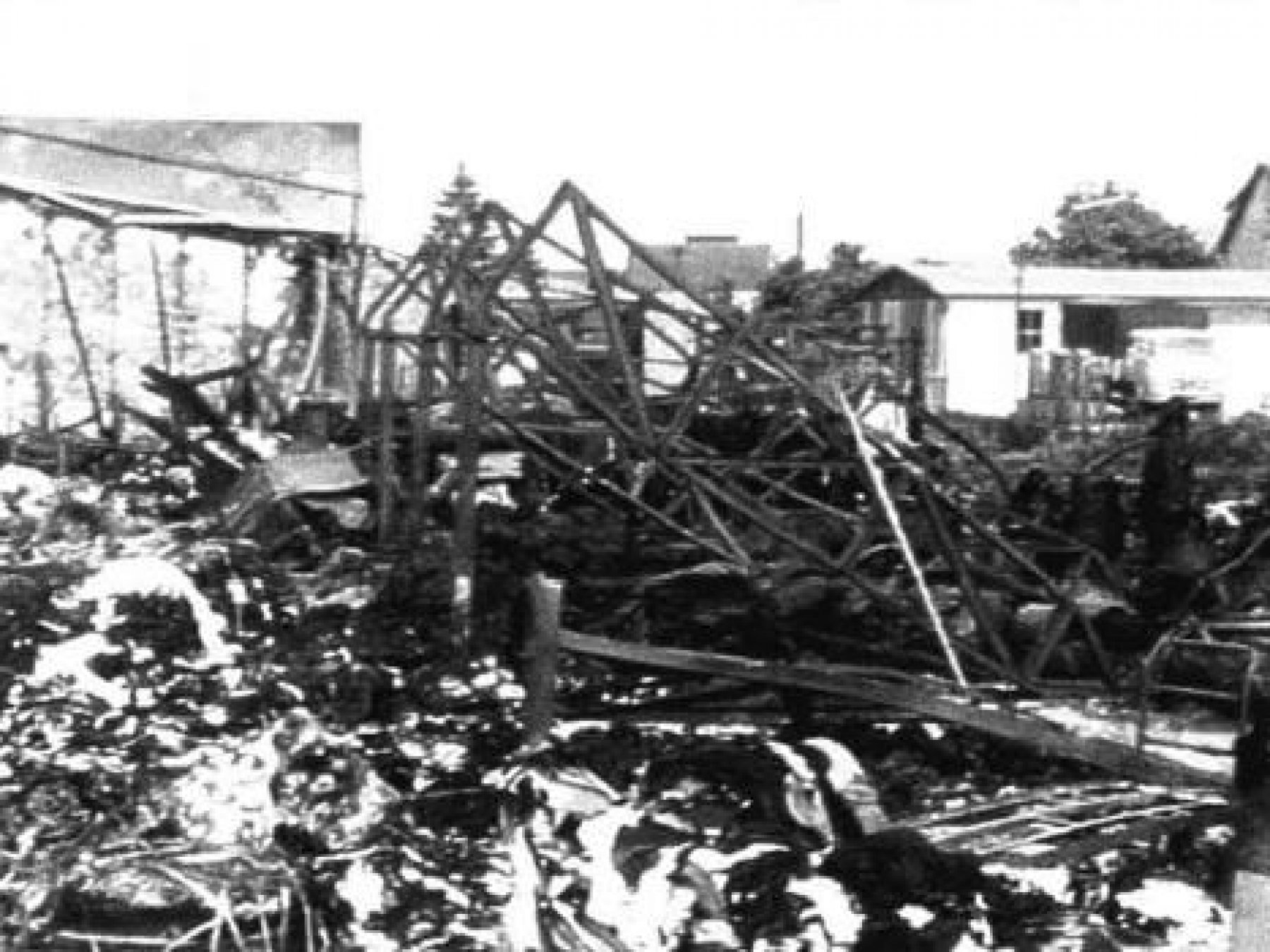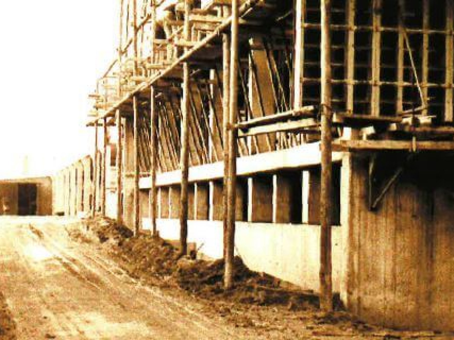 Der provisorische Wiederaufbau der Produktion erfolgt mit vorgefertigen Holzhallen an gleicher Stelle. In diesem Provisorium wird bis 1963 produziert.